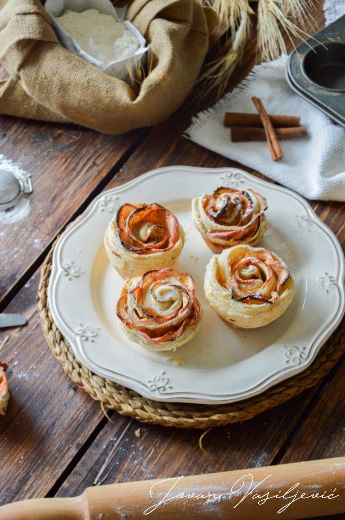 Zdravo ljudi! Evo me opet sa nekim receptom! Ovoga puta pravimo ove slatke male tartove, ili pitice u obliku ruža. Veoma je jednostavno, brzo se pravi, i najbolje od svega, možete ih jesti odmah dok su vruće ili hladne, ukus je neodoljiv! 😋 Mi smo ih pravili u kombinaciji jabuka, i breskva